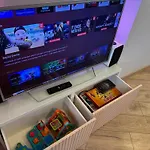 Pilna virtuve ar tvaika katlu, ledusskapi un krāsni ir pieejama pašapkalpošanās vajadzībām. Viesi var atrast bāru Chomsky tikai īsu attālumu no šī dzīvokļa. Tuvākā autobusa pietura Lacplesa iela atrodas tikai 5 minūšu gājienā.